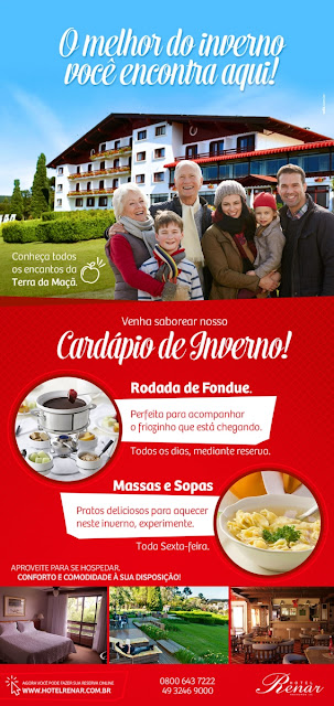 Agora aqueles que querem curtir essa nova frente polar que estará entrando neste próximo domingo, em SC e ainda desfrutar do acolhedora gente do Vale do contestado, em Fraiburgo, a Capital nacional da Maça, a dica é o majestoso Hotel Renar. Fico aqui pensando na sobremesa, a famosa Torta de Maçã.