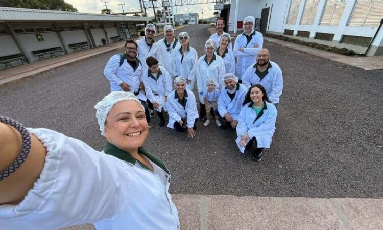 A supervisora de fitossanidade da Fischer, Amanda Dremer Vieira, explicou aos visitantes que todo o processo começa ainda no pomar, com treinamento específico dos colhedores. “A colheita é feita sem a folha e com o pedúnculo, utilizando sacolas com abertura inferior para evitar impactos e danos mecânicos. Esse cuidado garante melhor conservação e mantém a fruta crocante, saborosa e visualmente atrativa”, destacou.