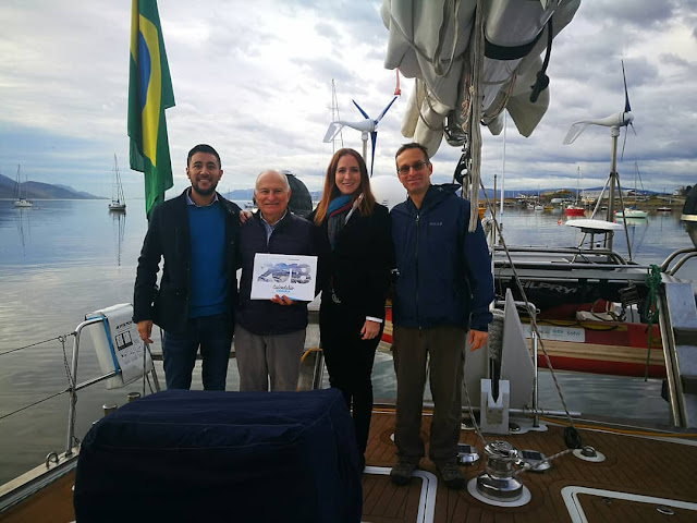 Depois de quase 10 dias em Ushuaia, na Patagônia Fantástica Argentina, A família Schurmann se despede de Ushuaia mais uma vez, prometendo voltar. Estavam produzindo mais um super documentário junto com a NETGEO. As filmagens foram gravadas na Caverna Congelada (Glaciar Vinciguerra) e demais roteiros em Ushuaia. Na foto Schurman está ladeado pelo Secretario de Turismo de Ushuaia Juan Sherañuck e pela responsável pelos assuntos internacionais de Ushuaia, a brasileira Cristiane Cavalli.