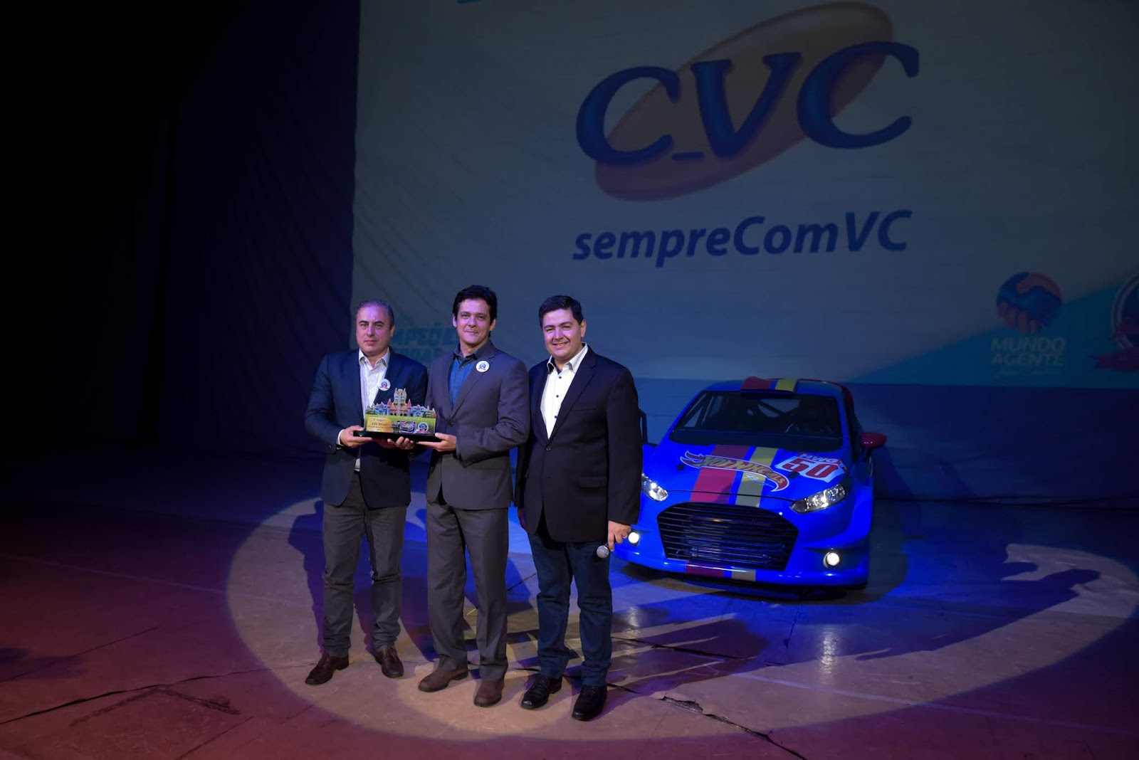 Diretor Comercial Roberto Vertemati (à dir.) entrega o prêmio de Campeão Geral de Vendas para a CVC Viagens